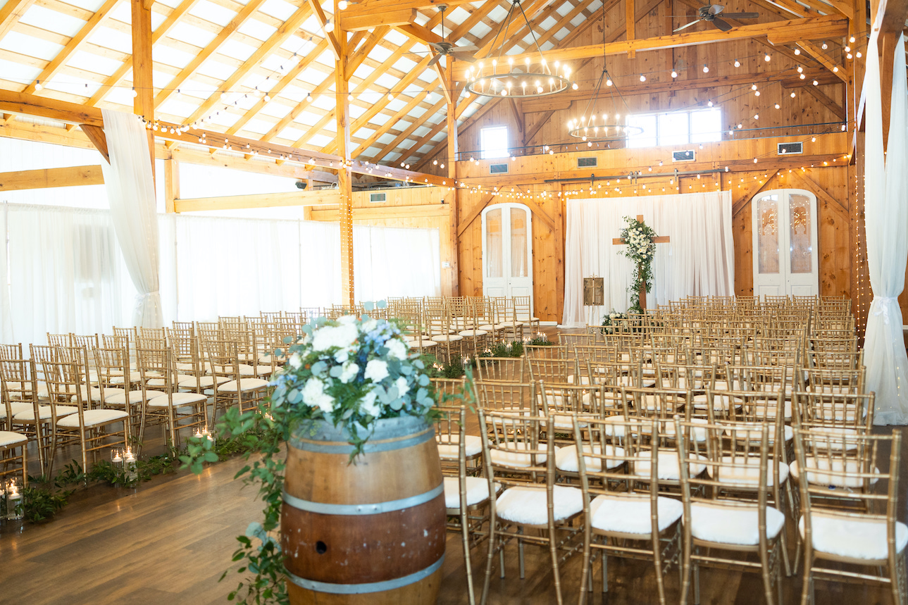 Laurel and Brian’s fall wedding planned by Havard Events at Shadow Creek was an enchanting celebration of love, marked by a soft and sophisticated blue color palette that perfectly complemented the beauty of the season. Their indoor ceremony, set within the venue’s elegant space, was a truly breathtaking affair, featuring an abundance of gorgeous flowers by The Rosy Posy that created a lush, romantic atmosphere. The stunning floral arrangements, with a mix of delicate blooms in shades of white, ivory, and soft blue, adorned the ceremony space, drawing attention to the exquisite cross design that served as the centerpiece of their vows.