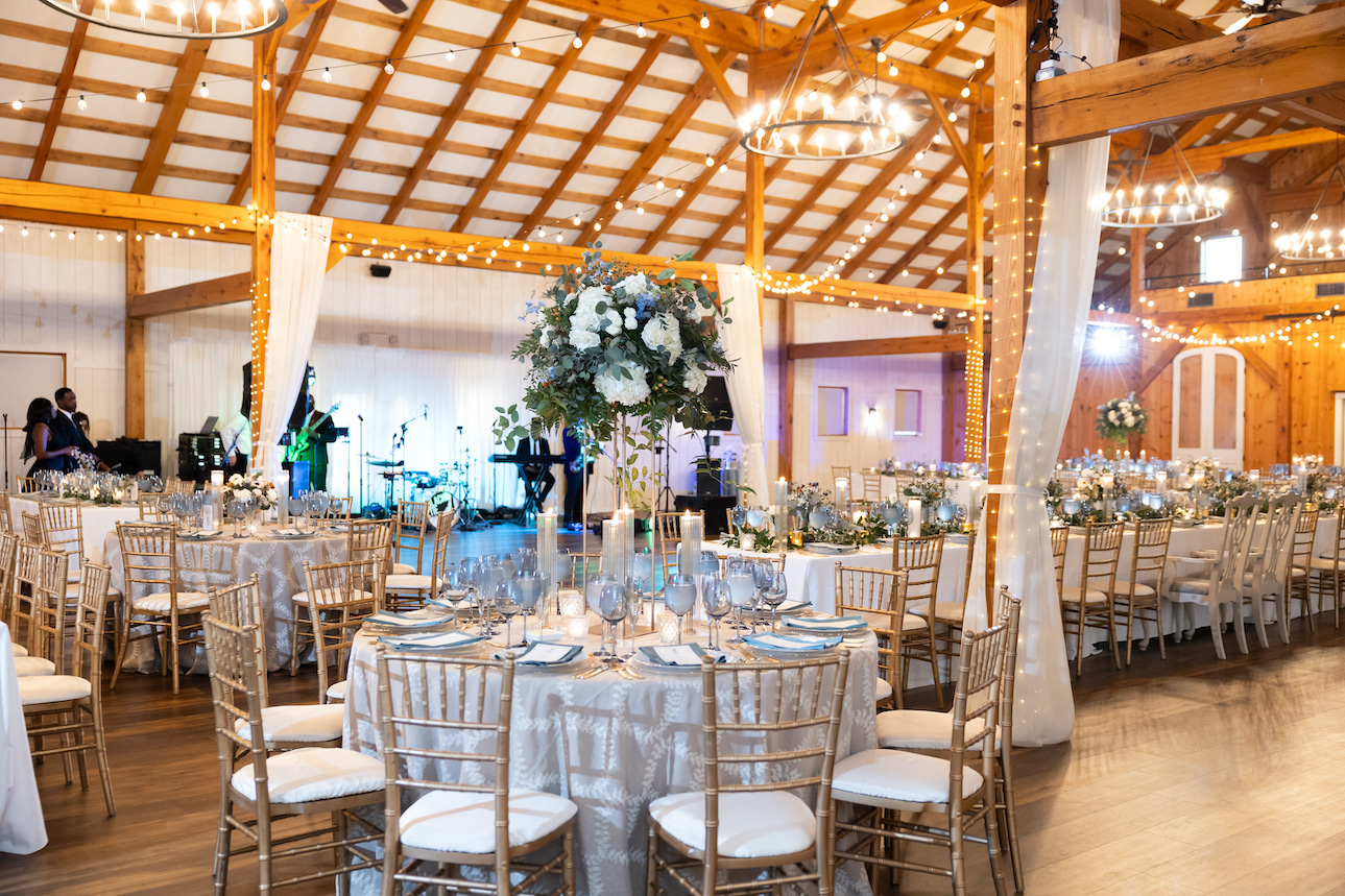 Shadow Creek’s graceful indoor setting provided the ideal backdrop, allowing the couple to exchange their vows surrounded by nature-inspired elegance. The floral decor, carefully chosen to highlight the serene color scheme, filled the room with warmth and beauty, while the soft blue tones added a serene and timeless touch to the entire event. From the moment guests arrived, they were immersed in a world of romantic charm, where every detail—from the flowers to the food by Main Event Caterers and overall ambiance—captured the essence of Laurel and Brian’s love story. Their fall wedding at Shadow Creek was a perfect blend of intimate charm, natural beauty, and modern elegance, making it a day that will be cherished for years to come.